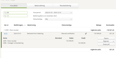 2. Kontrollera att du bokfört beslutet om extra utdelning: