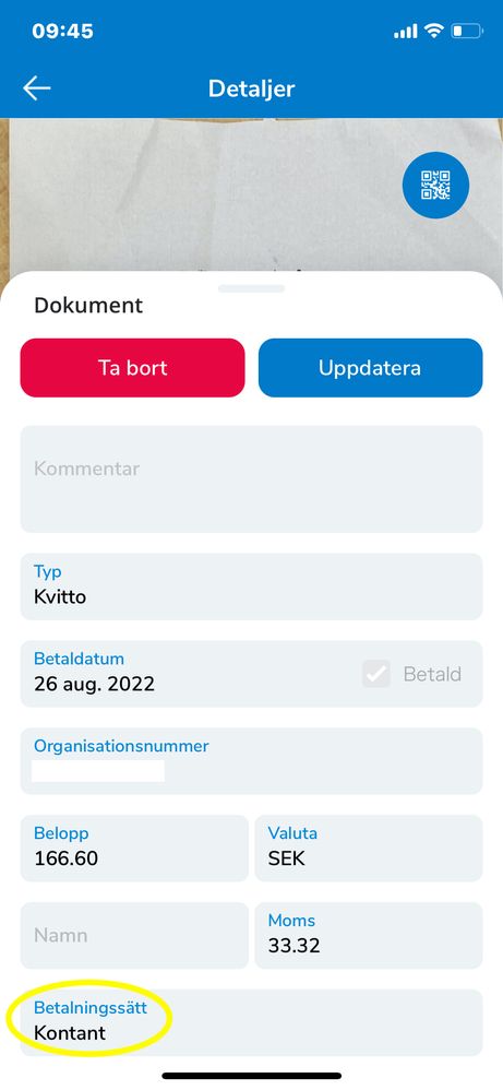 Vid registrering under Inköp - Bildunderlag och koppling mot ett kvitto så vill man ju att informationen från Visma Scanner ska följa med, man vill ju även kunna använda "kostnadstyp" för att snabbare kunna jobba i systemet.