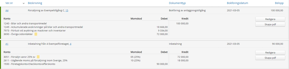 Jag har följt instruktionerna enligt Bokföra försäljning av anläggningstillgång (Kontantmetoden).