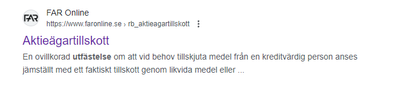 Hejsan. Man kan sedan några år även lämna en utfästelse om aktieägartillskott som då räknas som ett lämnat om det lämnas av en kreditvärdig person.. bifogar bil från FAR där jag tyvärr inte kan visa hela texten då jag inte är medlem...