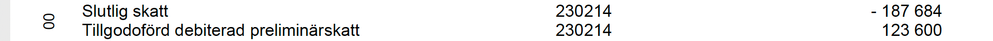 - Skatten för 2023 och konto 2510 kommer väl inte påverkas då beräkning av slutglitg skatt för 2021 stämde. Så den kommer verken höja eller sänka skatten för 2023. Tänker jag rätt?