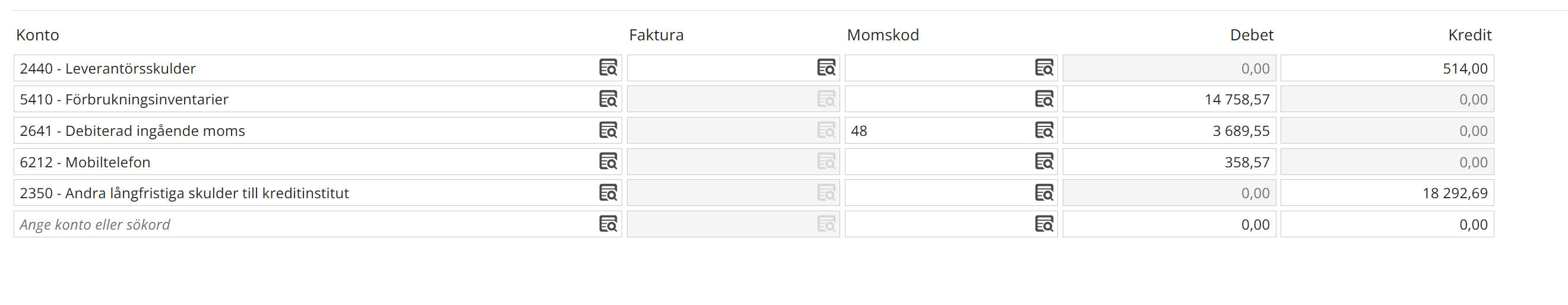 Företaget har precis köpt två nya mobiler med abonnemang från Tre där mobilerna avbetalas under loppet av 24 månader. Tidigare när vi har gjort detta har momsen på mobilerna delats upp och stått på varje faktura vilket gjorde det enkelt att bokföra.