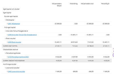 Det ser ut som bokföringen av 2023 års resultat inte var helt korrekt eftersom det ligger kvar ett beräknat resultat på 13 kr.