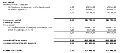 Skrev ut en balansräkning också: