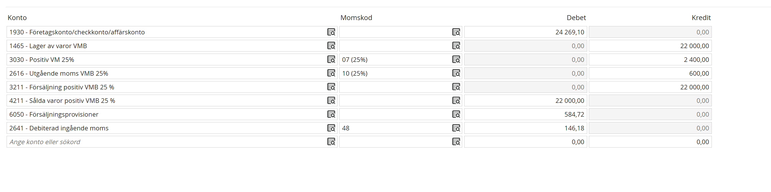 Sedan kommer följdfrågan, hur bokför jag detta (vilka konton) samt hur ska underlaget se ut? Jag kan väl inte göra en faktura i Spiris med VMB utan behöver skriva ett manuellt kvitto?