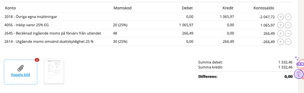 Konteringen du har bifogat är helt korrekt om beloppet du betalat var 1065,97 SEK