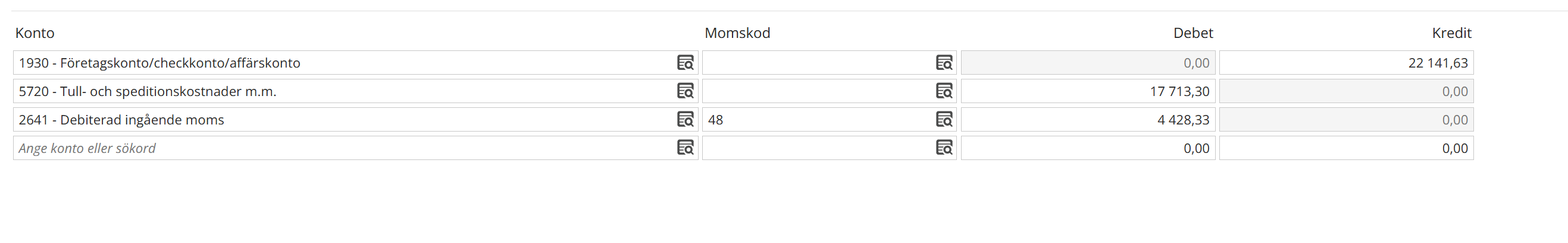 hur bokföra shipping faktura(inom sverive inköp transport, tull osv)