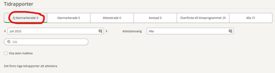 Jag har två anställda denna månad som har klarmarkerat fel tidrapport, alltså augusti istället för juli. Borde det inte komma upp här då att det finns tidrapporter som inte är klarmarkerade? Dem finns under fliken alla med statusen "senare period är klarmarkerad", men det är ju inte intressant när det är juliperioden som är vald. Står det 0 som inte är klarmarkerade så blir man ju lite lurad...