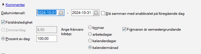 Vid föräldrarledighet tjänar man in betald semester de 120 första dagarna, men programmet beräknar att man tjänar in betald semester även efter dag 120. Är det någon inställning som jag inte gjort?